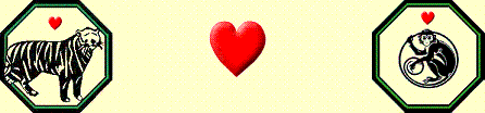 Chinese Tiger and Monkey begin with passion. Drawn to each other, they can't help themselves. Between Tiger's good looks and Monkey's sense of humor, what's not to like? Their issues stem from different outlooks on life. While Tiger loves freedom, they also want to accomplish a lot. Monkey also enjoys freedom, but they also like to spend their time playing, which can make Tiger feel like they are the only one putting forth any effort. These two will have a great time together, but they need to be watchful about arguing. If Monkey lets Tiger lead and Tiger learns that Monkey needs constant stimulation to be happy, they may develop a successful union. If Monkey doesn't find a way to stimulate their curiosity, they may begin competing with Tiger. In business, Tiger is very demanding and Monkey wants to play all the time. They should not go into business together. When this pairing consists of a Monkey man and a Tiger woman, the rivalry between them could be the cause of many problems. She will be happy that he believes in feminism, but won't understand why he prefers to work on the problems of others instead of their own. When this pairing consists of a Tiger man and a Monkey woman, her sense of humor can overcome many tense situations that may arise between them. She likes lots of friends; he prefers she spend more time with him. If they cooperate and make compromises, they will both be much happier in the long run. Arguing may be their downfall. Choose another Chinese Compatibility Sign OR Astrology Signs - Explore the Star Signs - Home