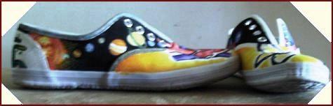It didn't take her very long and she's had soooooooo many compliments on them. All she did was buy an inexpensive pair of canvas shoes and some acrylic paint. She pre-drew the outline in light pencil before she began painting. If you do decide to try this I would highly recommend some type of a laquer once the shoes are finished.